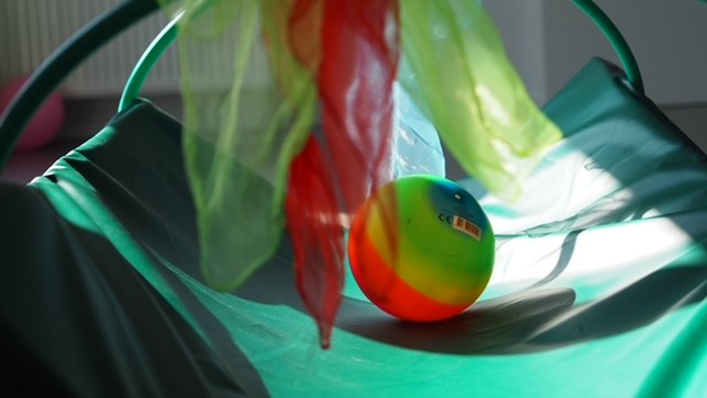 Der Entspannungsraum bietet einen ruhigen Rückzugsort. Hier können Kinder bewusst Materialien, Licht und Klänge wahrnehmen und nach intensiven Spielsituationen neue Energie tanken. Mit verschiedenen sensorischen Materialien wird die Achtsamkeit und Selbstregulation unterstützt. Der Raum lässt sich zudem fast vollständig abdunkeln und schafft so eine besonders ruhige und geschützte Atmosphäre.